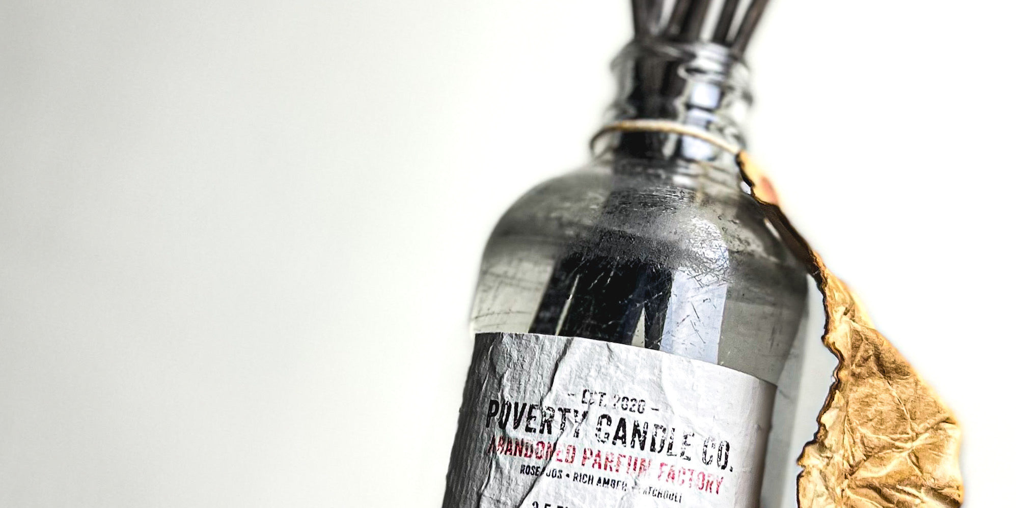 HAND LABORED POURED AND FRAGRANCE IN INTIMATE WORK SPACE with LUXURY-POTENCY-DISTRESS